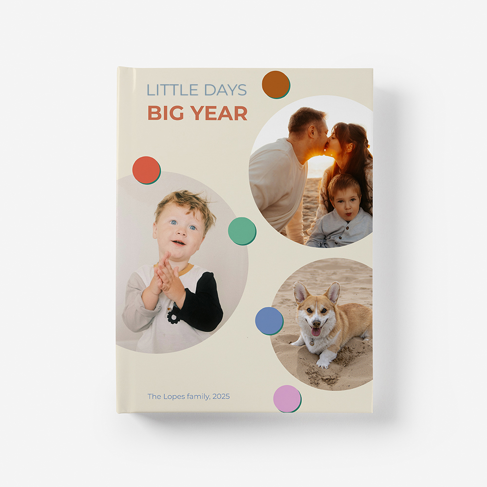 A capa rígida em cartão duro oferece proteção adicional e um acabamento elegante ao teu álbum.